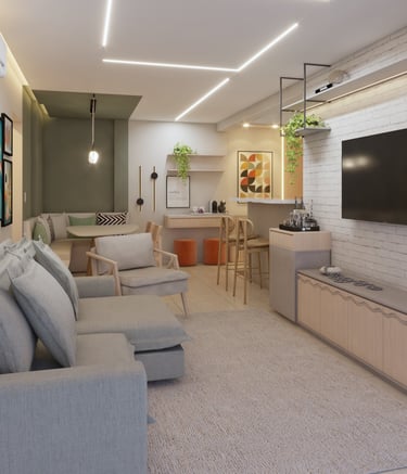 Um espaço contemporâneo pensado para lazer, descanso e convivência.