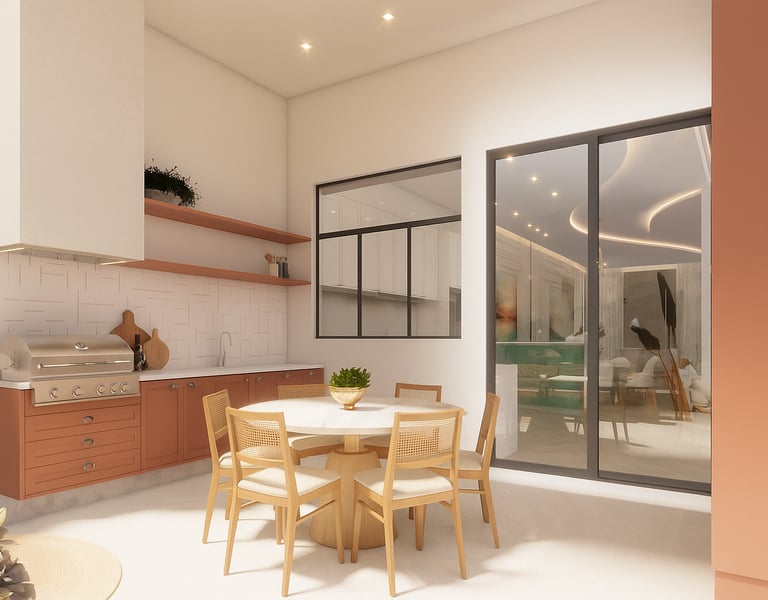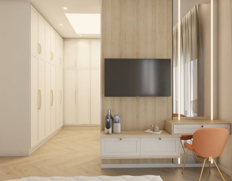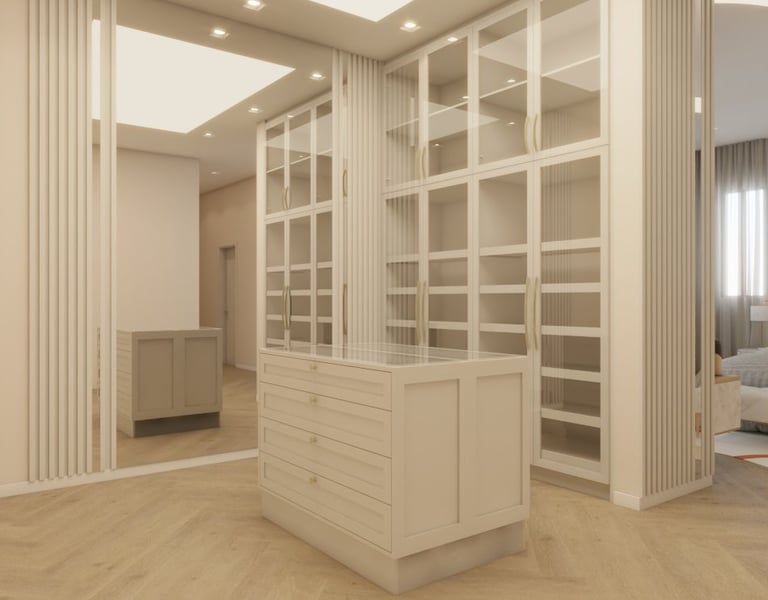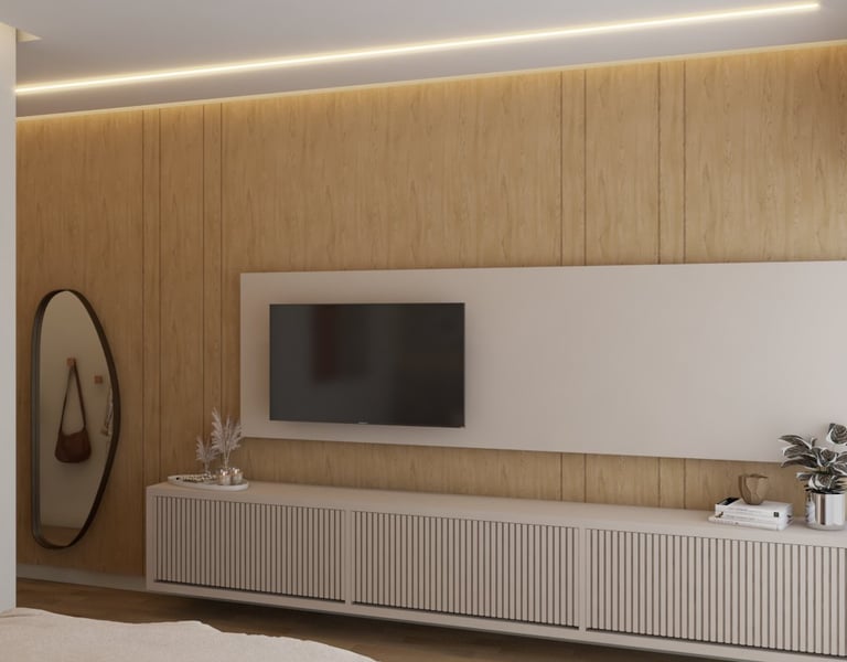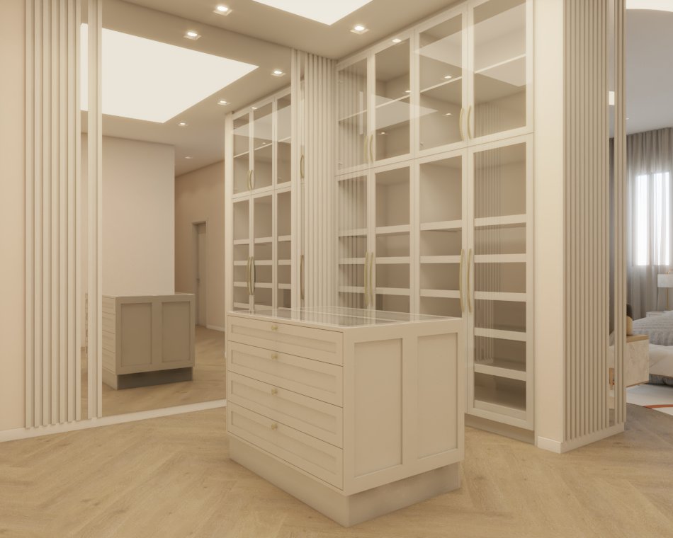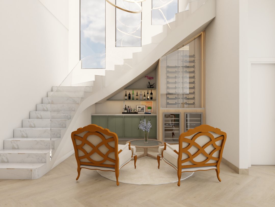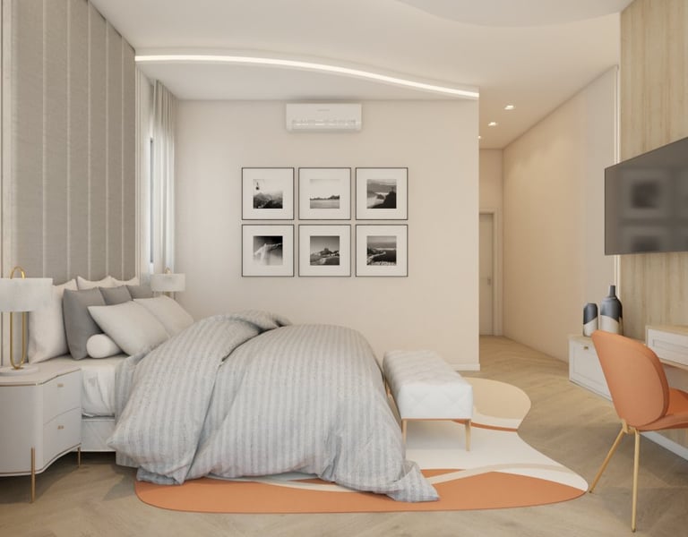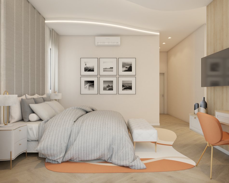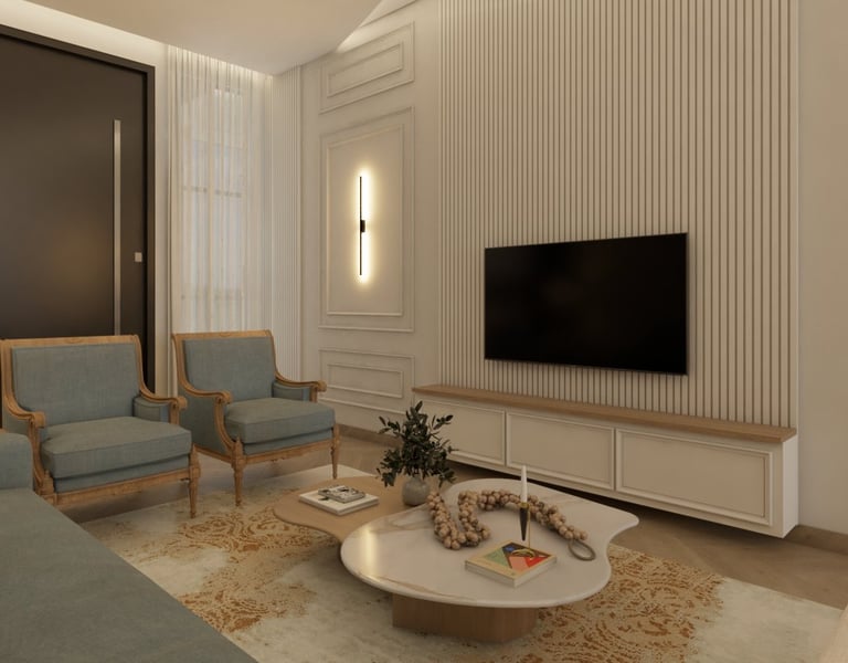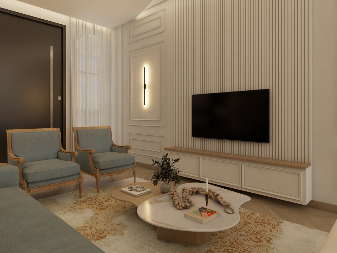 O projeto traduziu o desejo do cliente por um ambiente clássico, elegante e acolhedor, sem abrir mão da leveza visual e da funcionalidade no dia a dia. A proposta partiu da valorização de uma base neutra, enriquecida por detalhes arquitetônicos marcantes e pela presença de cores suaves cuidadosamente inseridas na composição.