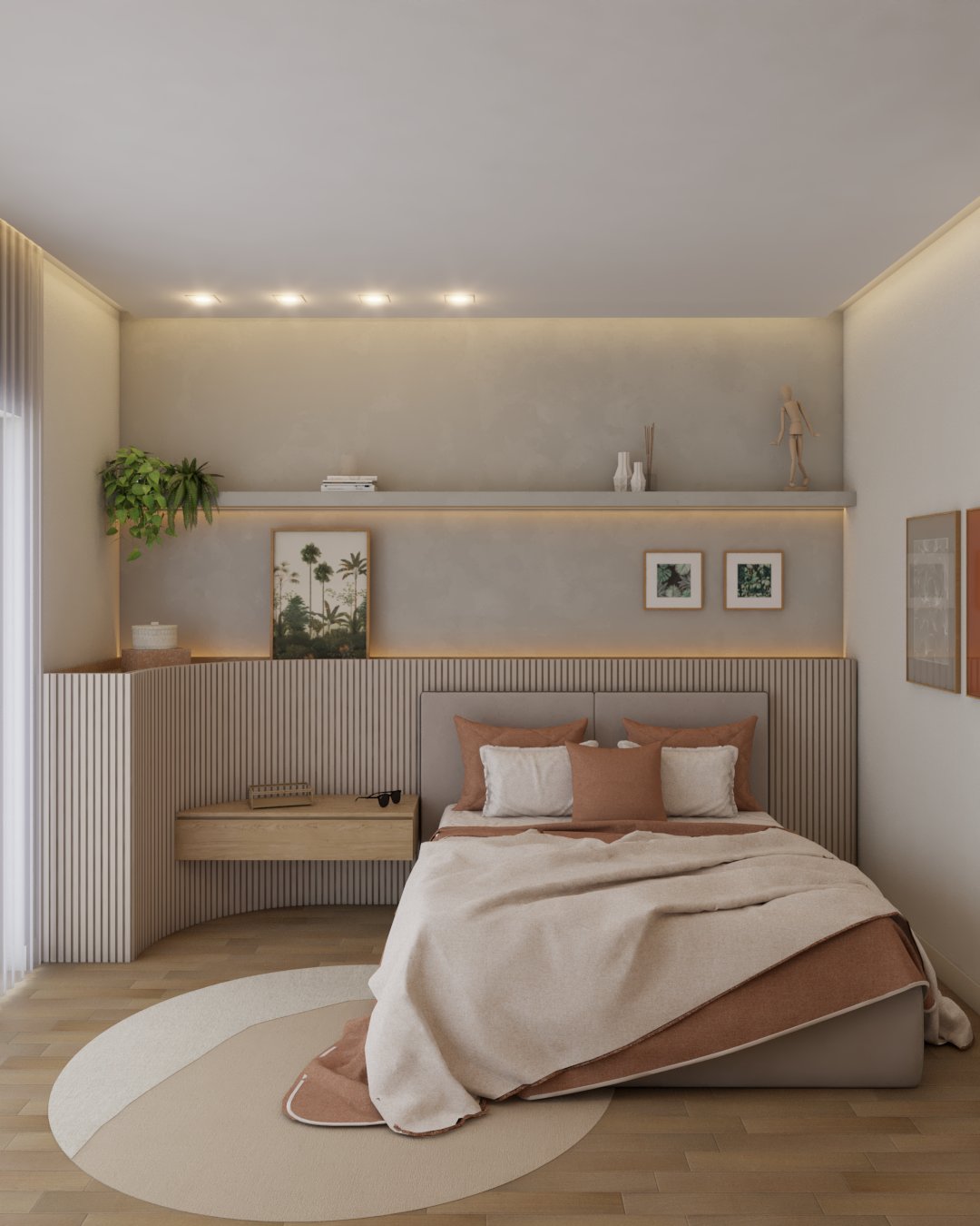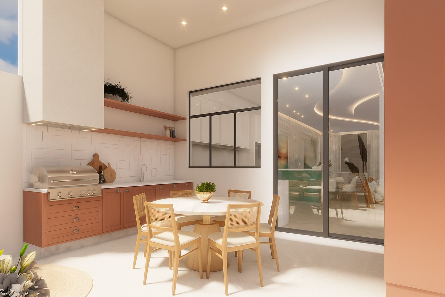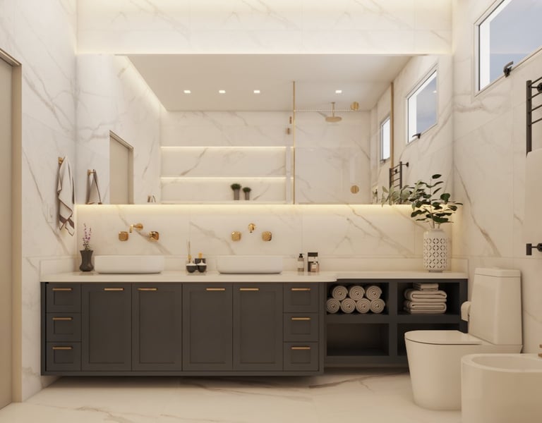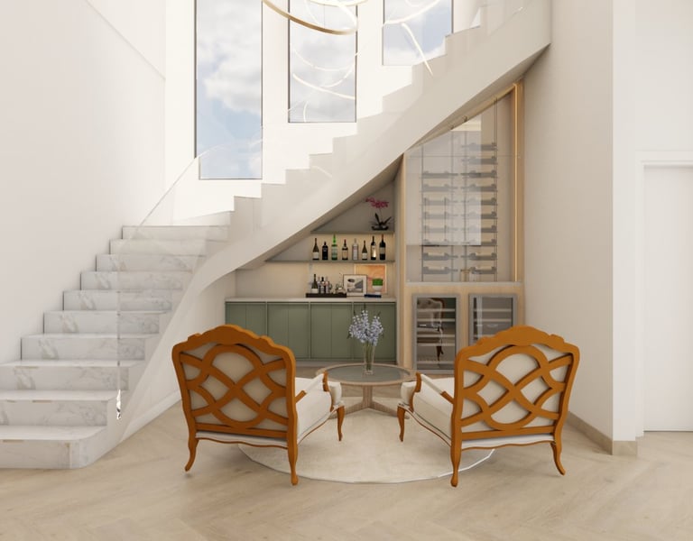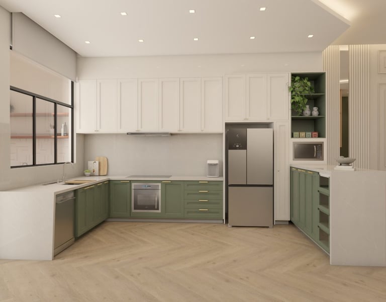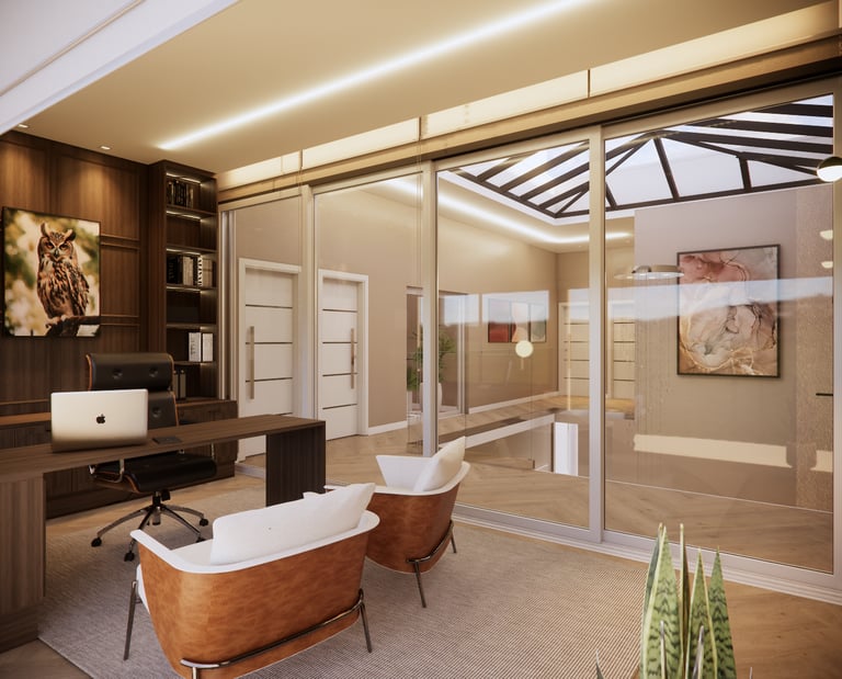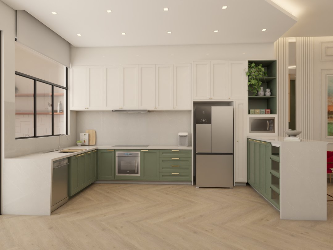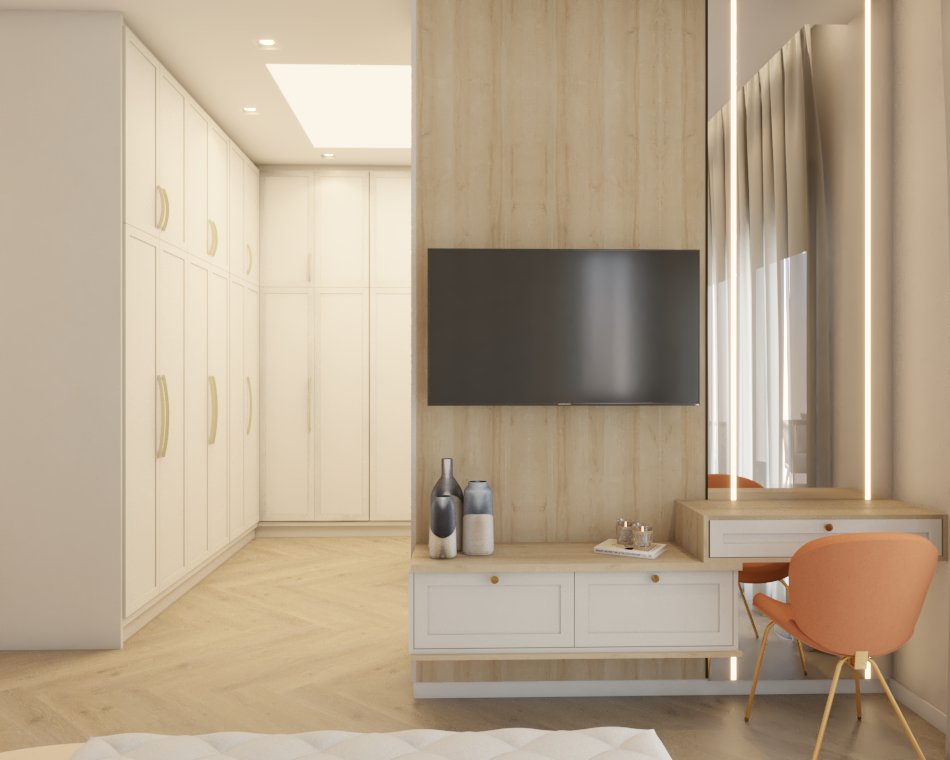 O projeto traduziu o desejo do cliente por um ambiente clássico, elegante e acolhedor, sem abrir mão da leveza visual e da funcionalidade no dia a dia. A proposta partiu da valorização de uma base neutra, enriquecida por detalhes arquitetônicos marcantes e pela presença de cores suaves cuidadosamente inseridas na composição.